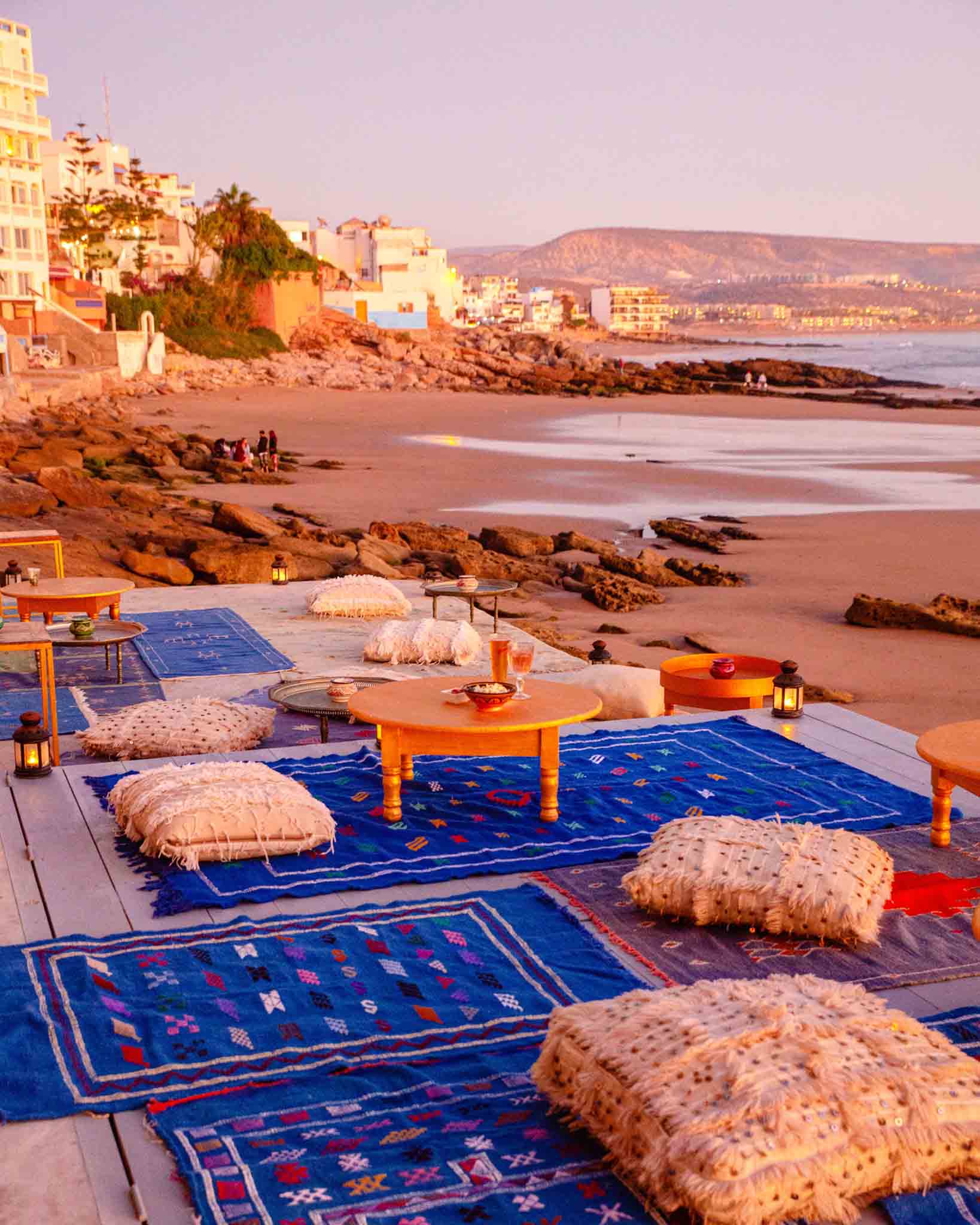 Explorez le plus étonnant bar au bord de la mer de Taghazout et plongez dans une ambiance inoubliable en vous servant une sélection de boissons non alcoolisées, de bières fraîches et une sélection de vins et des cocktails fraîchement préparés!