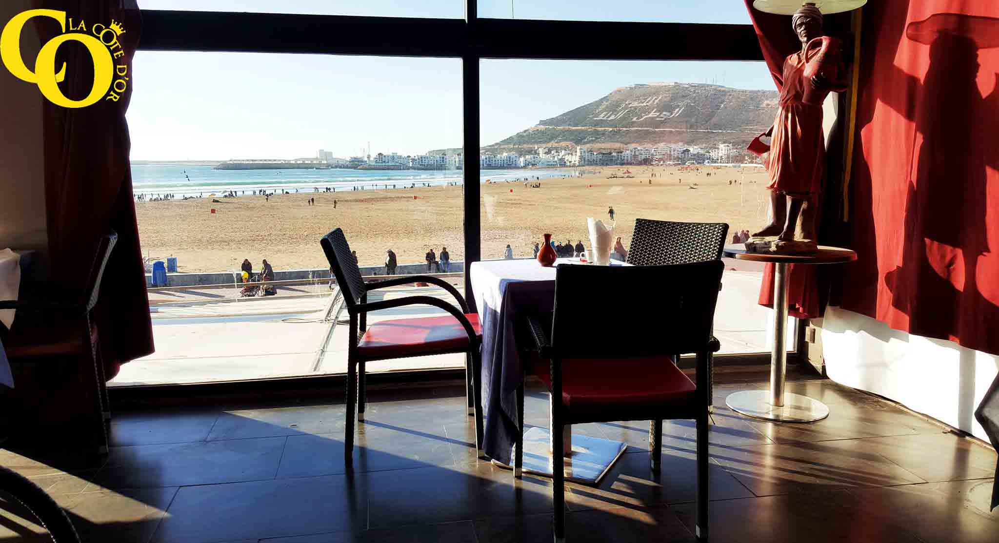 Ce café Restaurant Glacier s'étale sur 2 étages terrasses et vous offre une vue panoramique sur la baie d'Agadir et la kasbah Agadir Oufella. A 5 minutes de centre de ville, La Côte d'Or vous accueille dans un cadre convivial et moderne. La Côte d'Or vous propose un cuisine traditionnelle ainsi qu'un salon chaleureux, une terrasse panoramique, un restaurant et un bar dans une ambiance agréable.