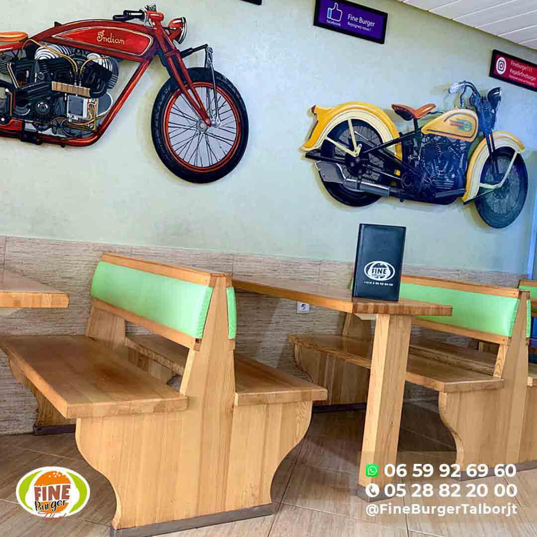 Fine Burger Talborjt est un restaurant de fast food proposant un large choix de menus (Burger, Sandwich, Pizza, Panini, Salade, Plats…) avec un excellent rapport qualité-prix, idéal pour manger en famille, avec des amis ou collègues. Fondé en 2012 et situé en plein coeur d'Agadir dans le Quartier emblématique du Talborjt, le Restaurant bénéficie d'un emplacement stratégique surplombant le grand boulevard du Président Kennedy. Grâce à son nouveau concept, inspiré des authentiques des grandes chaînes américaines de Fast food, Fine Burger Talborjt a réussi de s'imposer comme étant l'un des pionniers importants de la ville dans le domaine de la restauration rapide " Fast Food" et ce en quelques peu d'années.