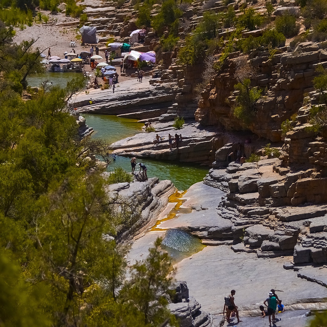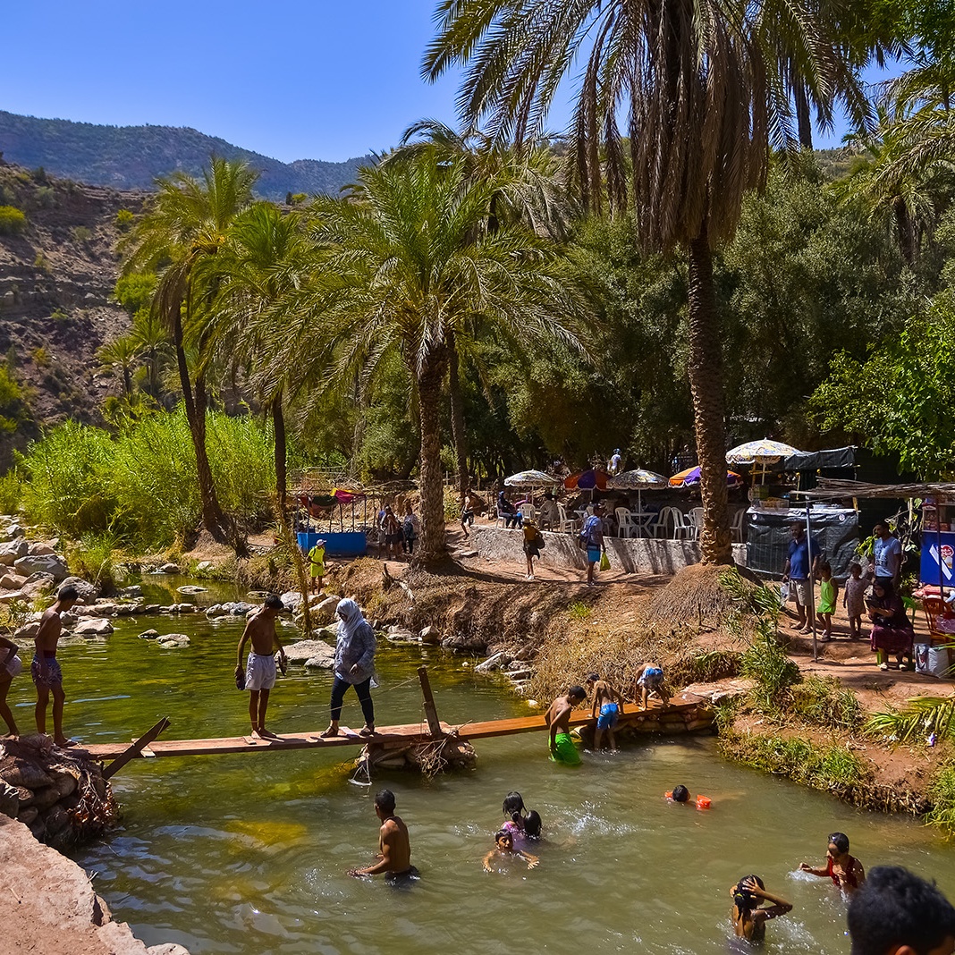 Paradise Valley est une section de la vallée de la rivière Tamraght dans les montagnes du Haut Atlas marocain. Située à environ 20 km au nord d'Agadir, la vallée est connue pour son abondance de piscines de roche et de petites chutes d'eau. Paradise Valley présente un paysage idyllique que l'on croirait un décor de film. C'est un petit paradis sur terre que nous vous recommandons de visiter lors de votre voyage au sud du Maroc.